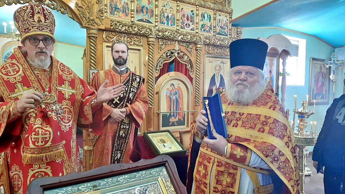 В этот день правящий архиерей на память о сегодняшнем богослужении подарил храму лжицу. Также Владыка в честь дня рождения настоятеля храма подарил протоиерею Виктору наперсный крест.