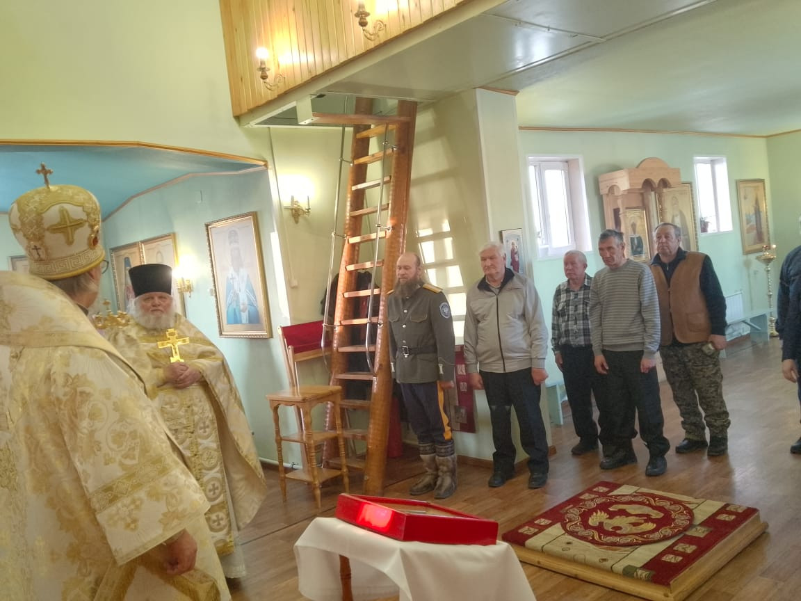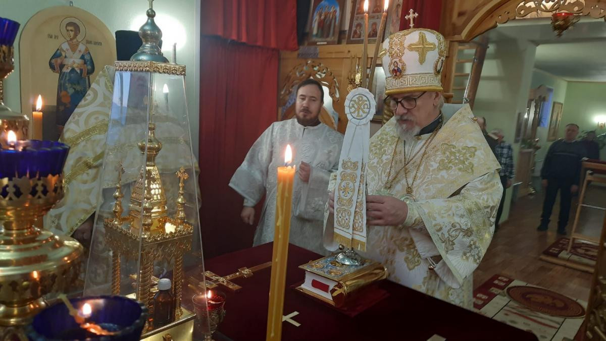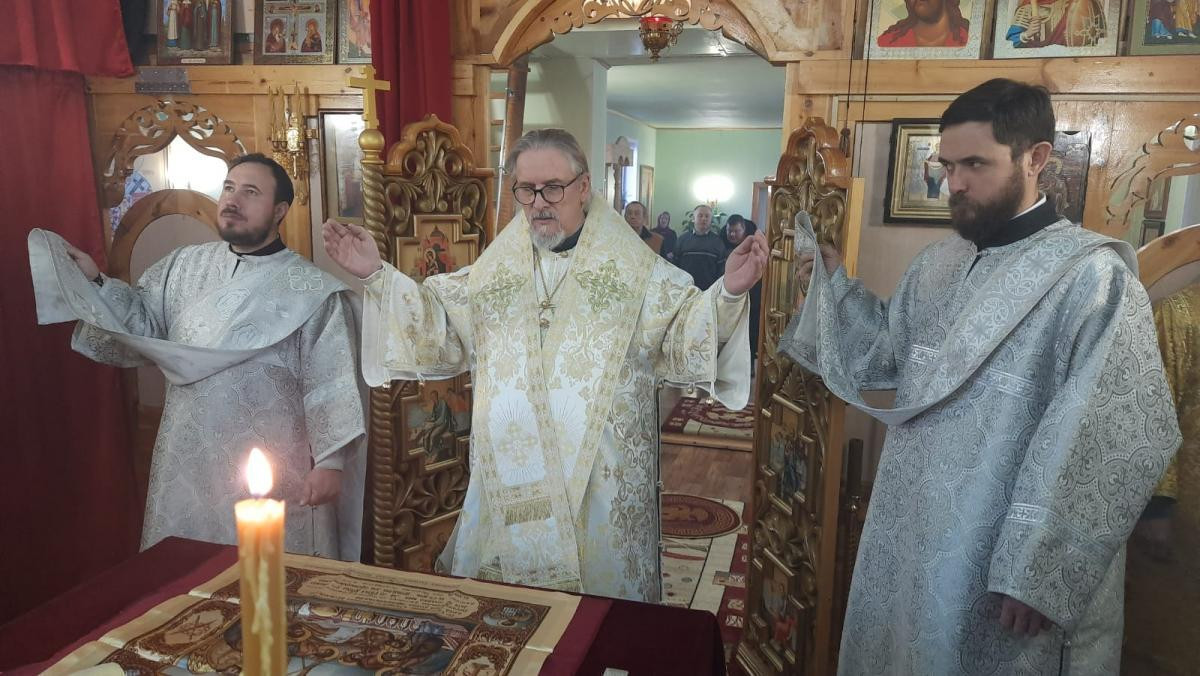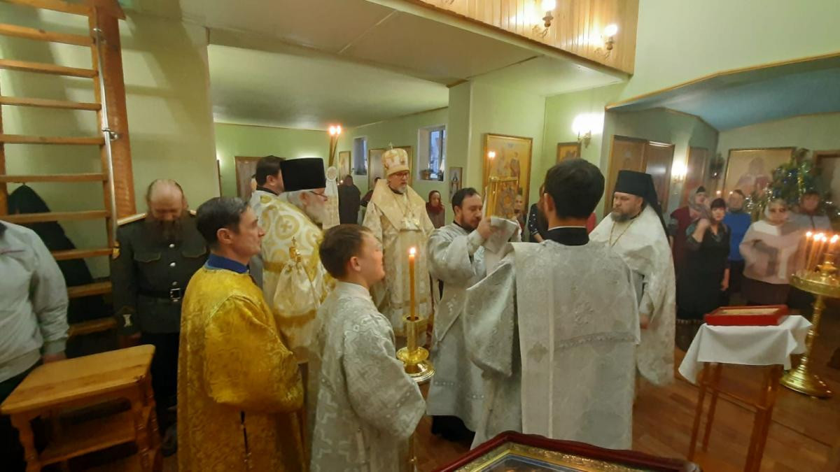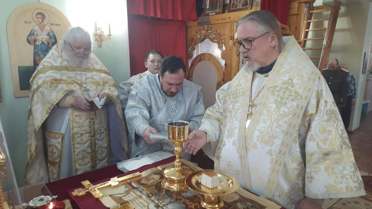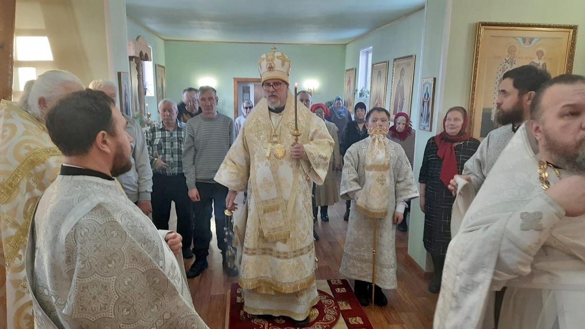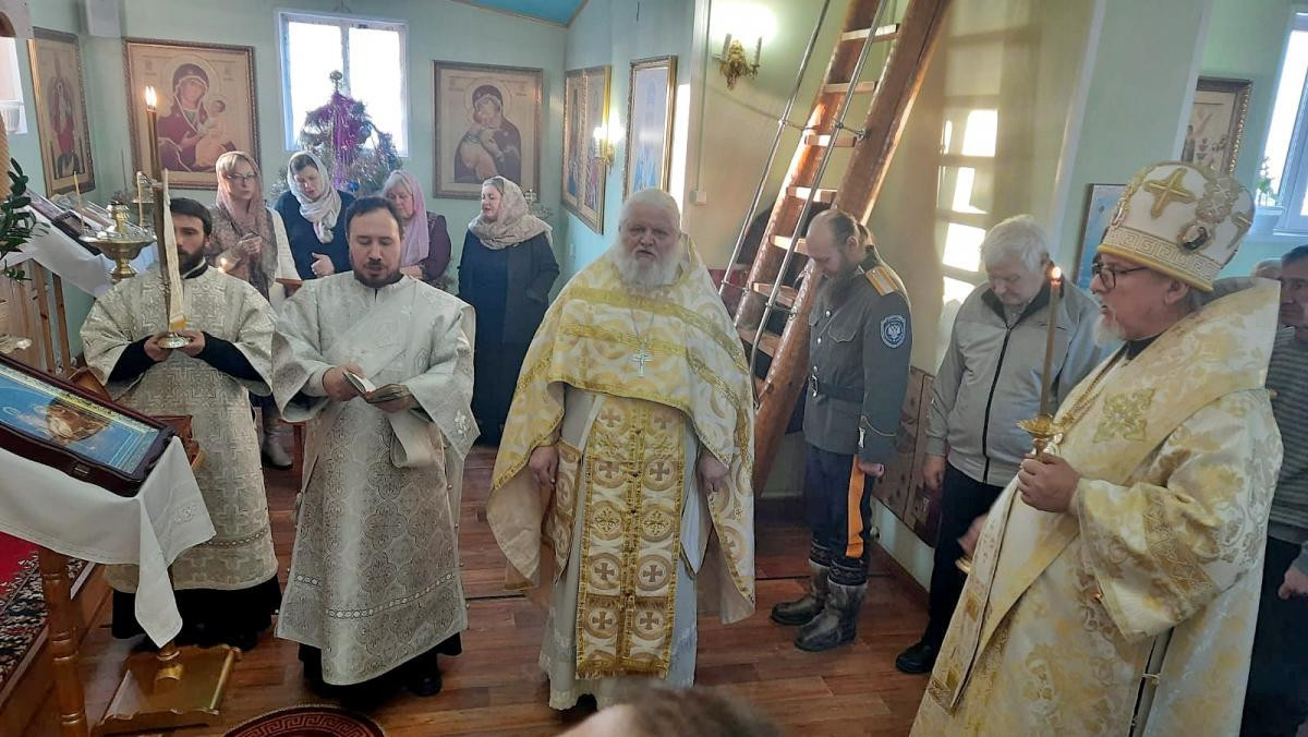 Его Высокопреосвященству сослужили: настоятель храма преподобного Максима Исповедника в пгт. Новокручининский протоиерей Виктор Перепичка и настоятель храма Архангела Михаила пгт. Горный Читинского района иеромонах Александр (Михайлов).